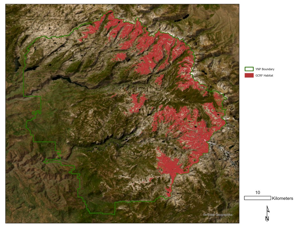 Results show that there is suitable habitat for the species within the eastern region of Yosemite National Park.